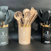 سرویس کفگیر Kitchen Set ساخته شده از با کیفیت ترین مواد سیلیکون با استاندارد FDA و بدون BPM ، دسته های چوبی از جنس بامبو و یک ظرف نگهدارنده از جنس پلاستیک میباشد. این سرویس از وزن متعادل و دیزاین منحصر بفردی برخوردار است که باعث میشود در دست گرفتن آن آسان و پخت و پز را راحت می کند. سیلیکون به کار رفته در این محصول ساخته شده از مواد غیر سمی ، بی بو و سازگار با محیط زیست است. این مجموعه وسایل آشپز خانه در برابر درجه حرارت سرما تا 30- و گرما 230+ درجه سانتی گراد مقاومت دارد. انعطاف پذیری ، رویه های نرم از خراشیدن و آسیب رساندن به ظروف شما جلوگیری میکند و همچنین باعث کاهش سر و صدا هنگام آشپزی می شود. این مجموعه متشکل از 11 عدد کفگیر ملاقه و 1 عدد ظرف نگهداره می باشد.