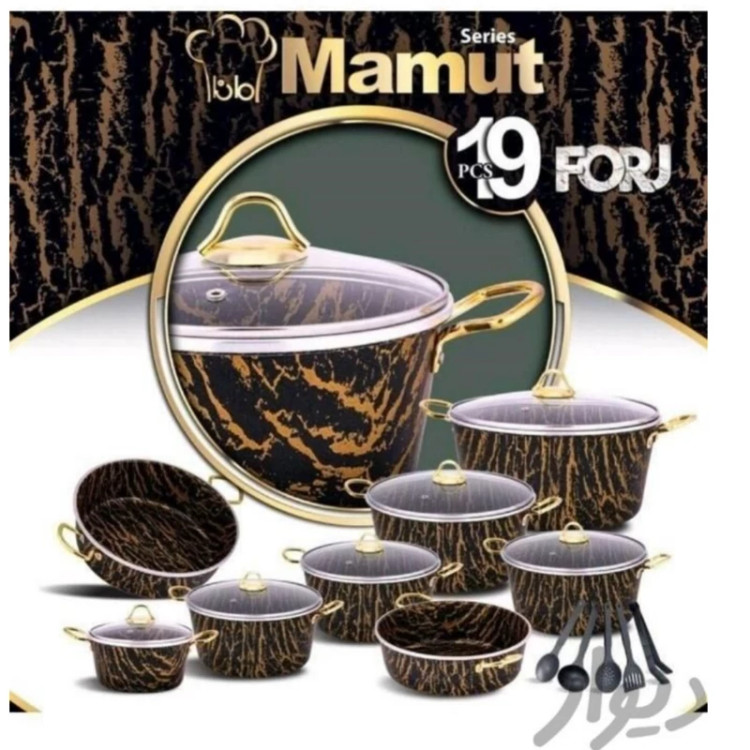 سرویس پخت و پز قابلمه و تابه 19پارچه ماموت