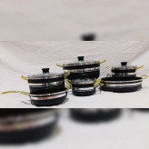 این سرویس دارای 4عدد قابلمه دو دسته یک عدد ماهیتابه دو دسته و یک عدد ماهیتابه تک دسته با 4عدد درب میباشد