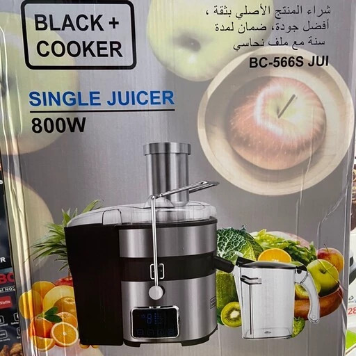 آبمیوه گیری تک کاره بلک کوکر مدل BC-566S از موتور بسیار قدرتمند با توانایی 800 واتی بهره می برد. علاوه بر این شما می توانید سرعت و قدرت دستگاه را به 5 صورت مختلف تنظیم نمایید. در ضمن شما تنظیمات سرعت را می توانید از طریق دکمه های لمسی قرار گرفته بر روی بدنه بر روی دستگاه عملی نمایید. ناگفته نماند که این محصول از جنس بسیار عالی ساخته شده است و زیبایی آن چشم نواز می باشد. توجه نمایید که جنس بدنه این محصول از نوعی پلاستیک فشرده شده و اتسل ضد زنگ ساخته شده است. جنس دیگر ظروف نیز از شیشه نکشن می باشد. از دیگرخصوصیات این محصول خارق العاده می توان به تیغه های ساخته شده از استیل ضد زنگ اشاره نمود. در ضمن شایان ذکر است که قطعات این محصول قابلیت شستشو در ماشین ظرفشویی را دارند. از دیگر قابلیت های آبمیوه گیری تک کاره بلک کوکر برخورداری از سیستم ضد چکه می باشد. همچنین برخورداری از پایه های ضد لغزش نیز از سایر خصوصیات آن به شمار می رود که از تکان خوردن دستگه جلوگری می کند. همچنین این آبمیوه گیر از مخزن تفاله و مخزن آبمیوه جدا بهره می برد. ظرف این محصول نیز ظرفیت بالایی دارند. به گونه ای که ظرفیت مخزن تفاله برابر با 2.2 لیتر است. که تمامی این قابلیت ها در کنار هم سبب شده اند تا این محصول بسیار عالی عمل نماید و بسیار کاربردی باشد.