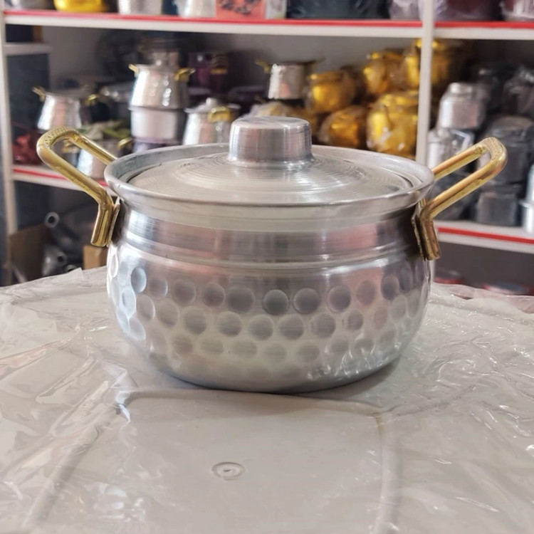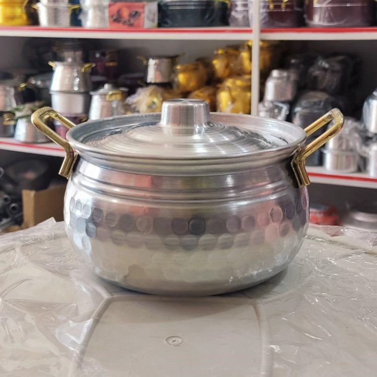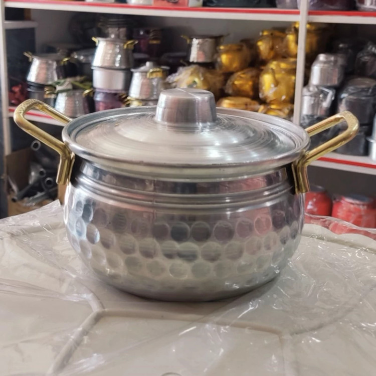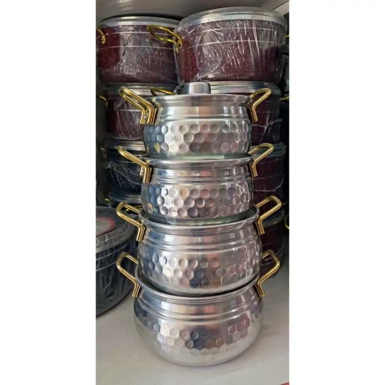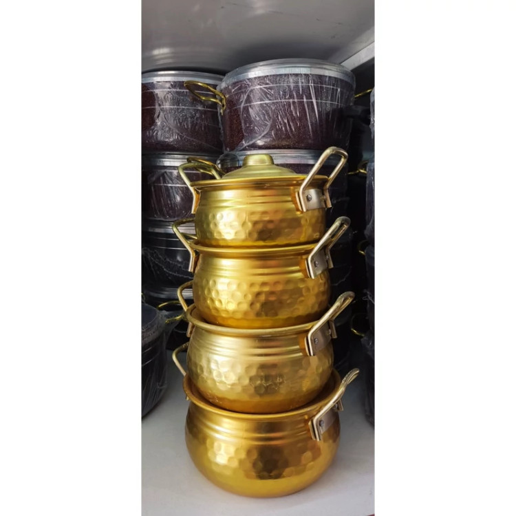 سرویس قابلمه روحی چکشی 4تایی دسته طلایی مدل خمره ای