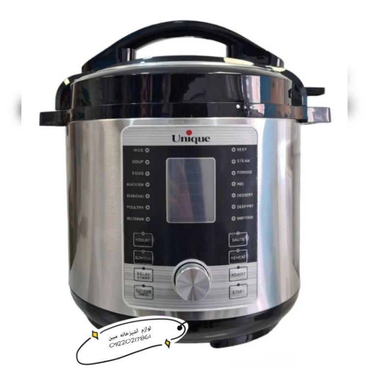 برند: یونیک مدل: UNE 1838 طراحی: آلمان ساخت : چین توان و قدرت: 1000 وات تایمر: دارد ظرفیت: 6 لیتر پوشش تفلون نچسپ: دارد حداکثر فشار: 70 کیلو پاسکال برنامه پیش فرض: 16 برنامه نگه دارنده گرما و فشار: دارد حسگر : لمسی و آنالوگ پایه ضد لغزش: دارد جنس بدنه: استیل ضد زنگ با پوشش فولادی تنظیم دما: دارد مصرف انرژی: A خاموشی خودکار: دارد جنس دیگ: نانو گرانیت با الیاژ آلومینیوم نچسب مقاوم در برابر اثر انگشت استفاده برای: برنج، لوبیا، گوشت، ماهی، سوپ، سبزیجات، کیک، ماکارونی و غیره برنامه تاخیر : حداکثر تا 24 ساعت متعلقات: کفگیر، واشر اضافه، پیمانه اندازه گیری