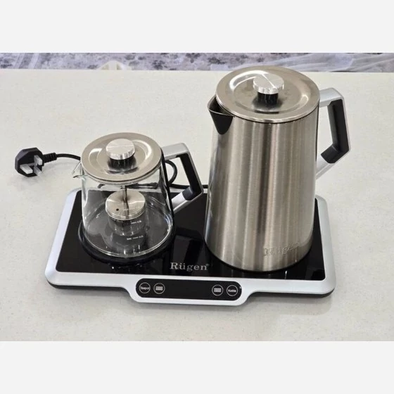 1-طراحی زیبا و لوکس: این چایساز علاوه بر عملکرد عالی، بهعنوان یک دکوراسیون زیبا در آشپزخانه شما خواهد درخشید. 2-طراحی و جنس قوری: قوری شیشه ای پیرکس به همراه دسته پلاستیکی با کیفیت و چایدان نسل جدید. 3-طراحی و جنس کتری: کتری استیل ضد زنگ و مقاوم در برابر افتادنهای ناگهانی. 4-طراحی پنل و امکانات آن: پنل و یا صفحهٔ شیشه ای که در مرکز آن کوبل با قابلیت چرخش 360 درجه وجود دارد. 5-دمای قابل تنظیم: با استفاده از پنل لمسی، میتوانید دمای آب را بهدلخواه تنظیم کنید و انواع چای را با دمای مناسب دم کنید. 6-دستیار سرآشپز: قابلیت قطع خودکار پس از جوشیدن آب و یا رسیدن به دمای دلخواه. 7-طعم واقعی چای: چایدان با قابلیت تنظیم ارتفاع، از سیاهشدن چای جلوگیری میکند و طعم اصلی چای را حفظ میکند. 8-نوشیدنی داغ در کمترین زمان: با این چایساز، دیگر نیازی نیست مدتزمان زیادی منتظر بمانید تا چای شما آماده شود. 9-ظرفیت کتری و قوری: کتری بزرگ با ظریف 1.7 لیتر به صورت مکس و قوری بزرگ 1 لیتری به صورت مکس. 10-صفحه بزرگ: وجود یک قسمت مجزا برای دم کن چای و تنظیمات مخصوص آن جمع بندی نهایی‼️ این دستگاه علاوه بر زیبایی بینظیر خود از آلیاژ و مواد درجه یک بهره گرفته و در طراحی آن سعی شده بهترین تجربه ممکن را به کاربر ارائه دهد و بتواند مدتها مثل روز اول با کیفیت کار کند. شرکت روگن تنوع بسیار بالایی در چایسازها را دارد که در نوع خود بینظیر هستند که توسط خود شرکت تا 18 ماه به صورت رایگان پشتیبانی و تا 5 سال خدمات پس از فروش نیز ارائه میشود