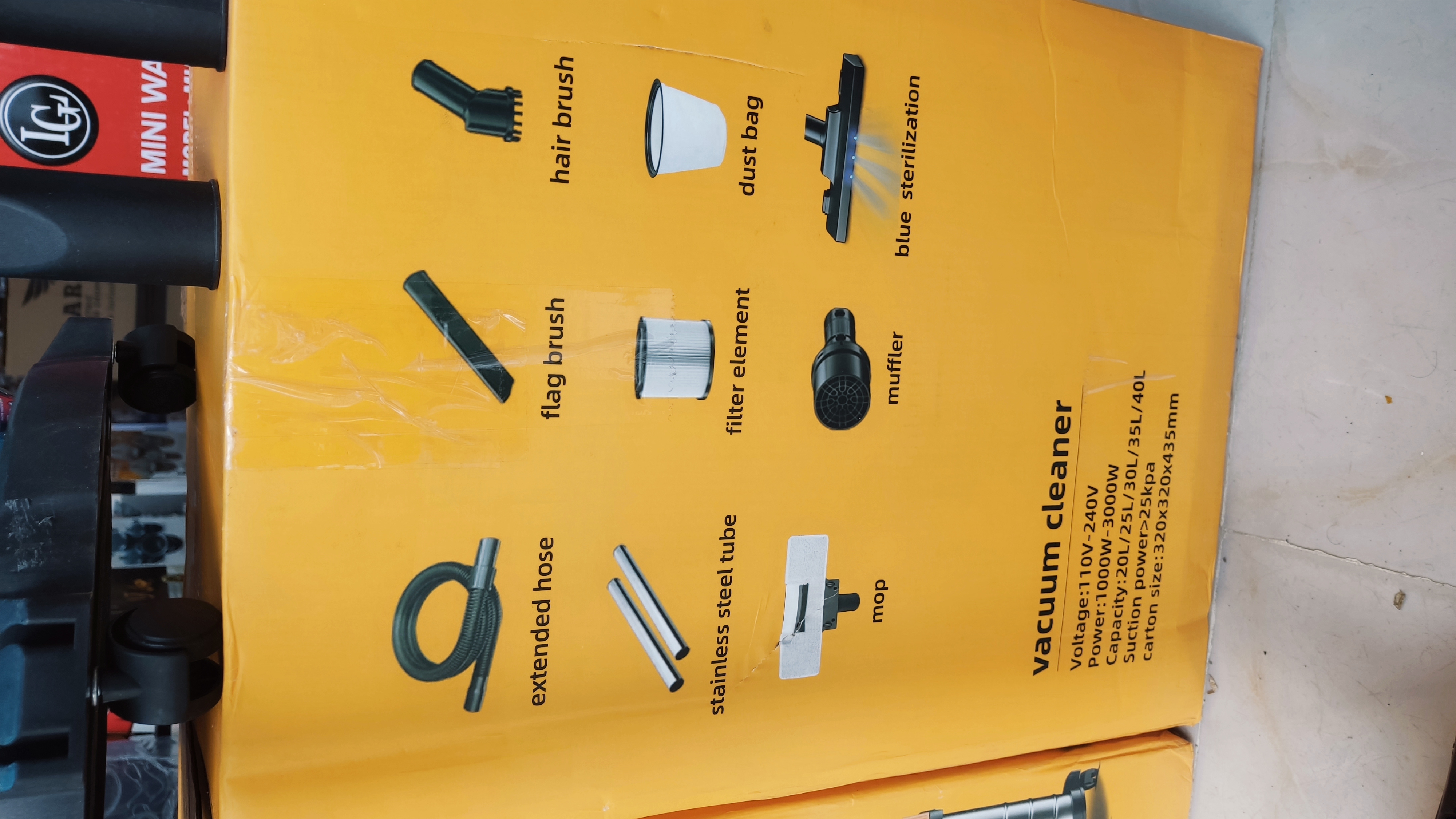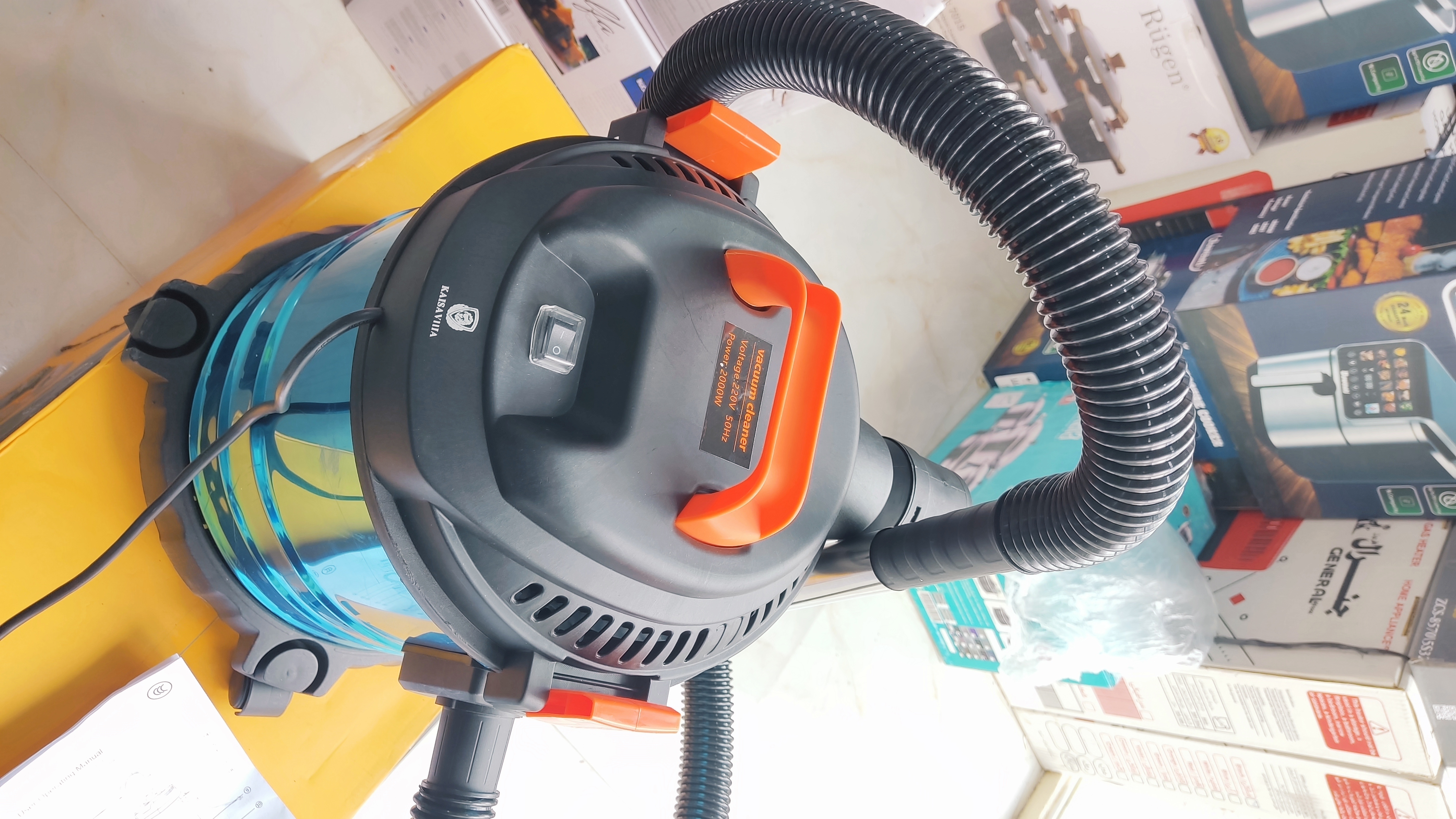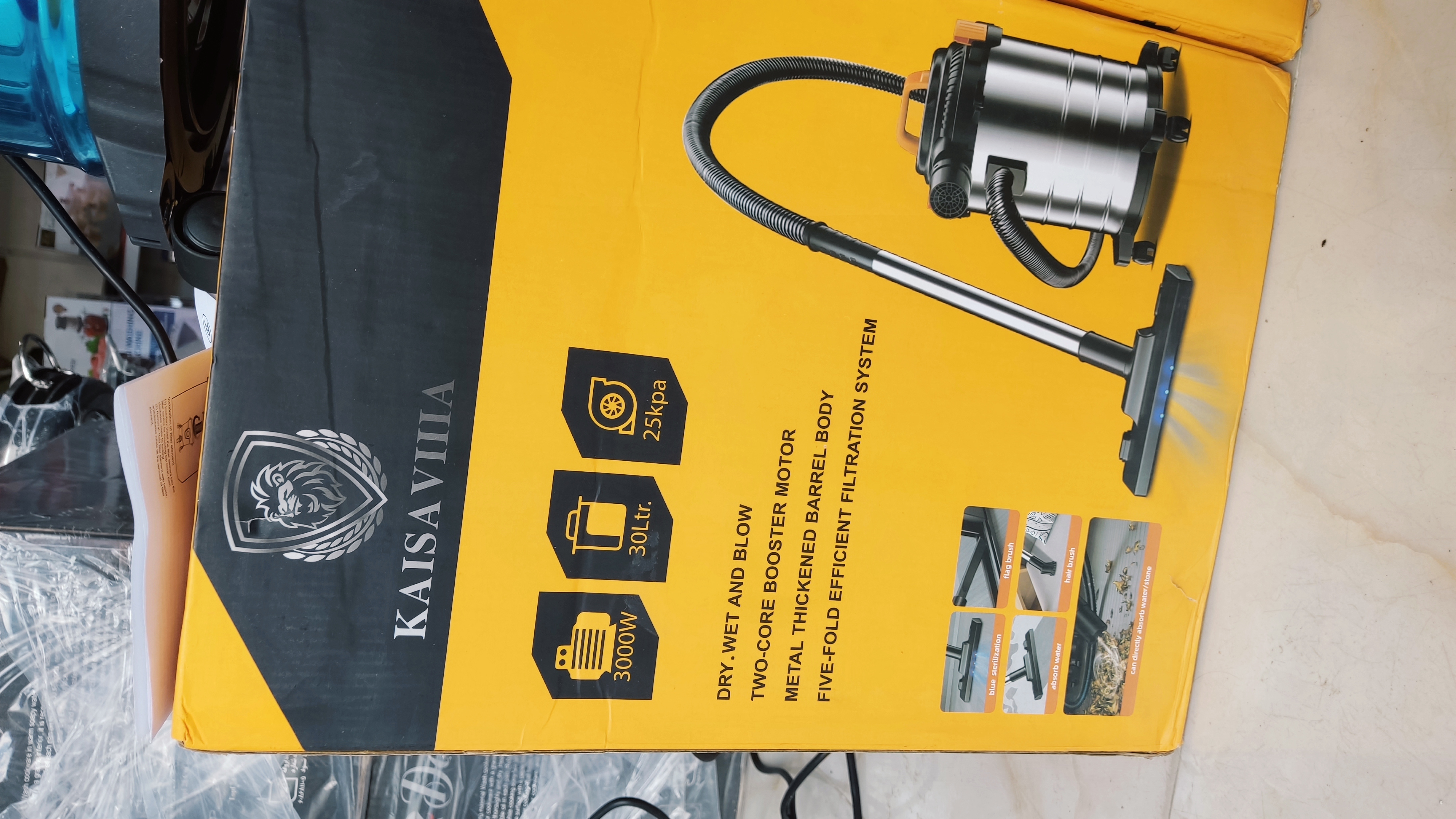 جاروبرقی سطلی KAISA توان موتور3000 قدرت واقعی با شهر برقی حداقل 2000وات و حداکثر 3000وات ولتاژ220وات حجم مخزن 30لیتر با جنس استیل ضخیم ضد زنگ و کاور ضد خش مجهز به سه سری متفاوت و کاربردی چرخ دار