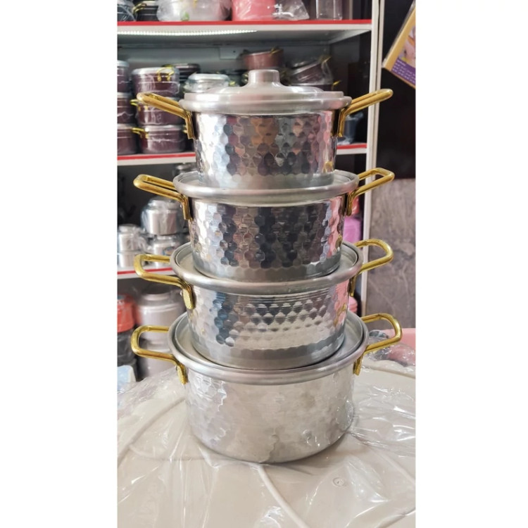 قابلمه (آلومینیوم) 4عددی چکشی دسته طلایی