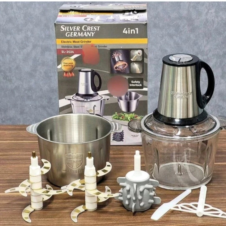 ⚜️2 عدد شش تیغه تیتانیوم فوق تیز و نشکن ⚜️کاسه استیل ضد زنگ و کاسه پیرکس محکم ⚜️ظرفیت کاسه ها 3.8 لیتری ⚜️دارای سیر پوست کن برقی ⚜️حک شده جرمنی اصل (Germany) روی موتور و تیغه ⚜️اصل و اورجینال آلمان🇩🇪 ⚜️قدرت 1800 وات واقعی ⚜️شفت موتور فلزی ⚜️سیم پیچ موتور کاملا مسی اصل ⚜️گوشت خردکن و سبزی خردکن قوی